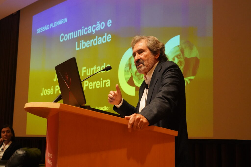 A sessão plenária “Comunicação e Liberdade” do XIII Congresso da SOPCOM contou com a presença de Joaquim Furtado, voz do primeiro comunicado do Movimento das Forças Armadas no dia 25 de abril de 1974, e José Pacheco Pereira, historiador e cronista.